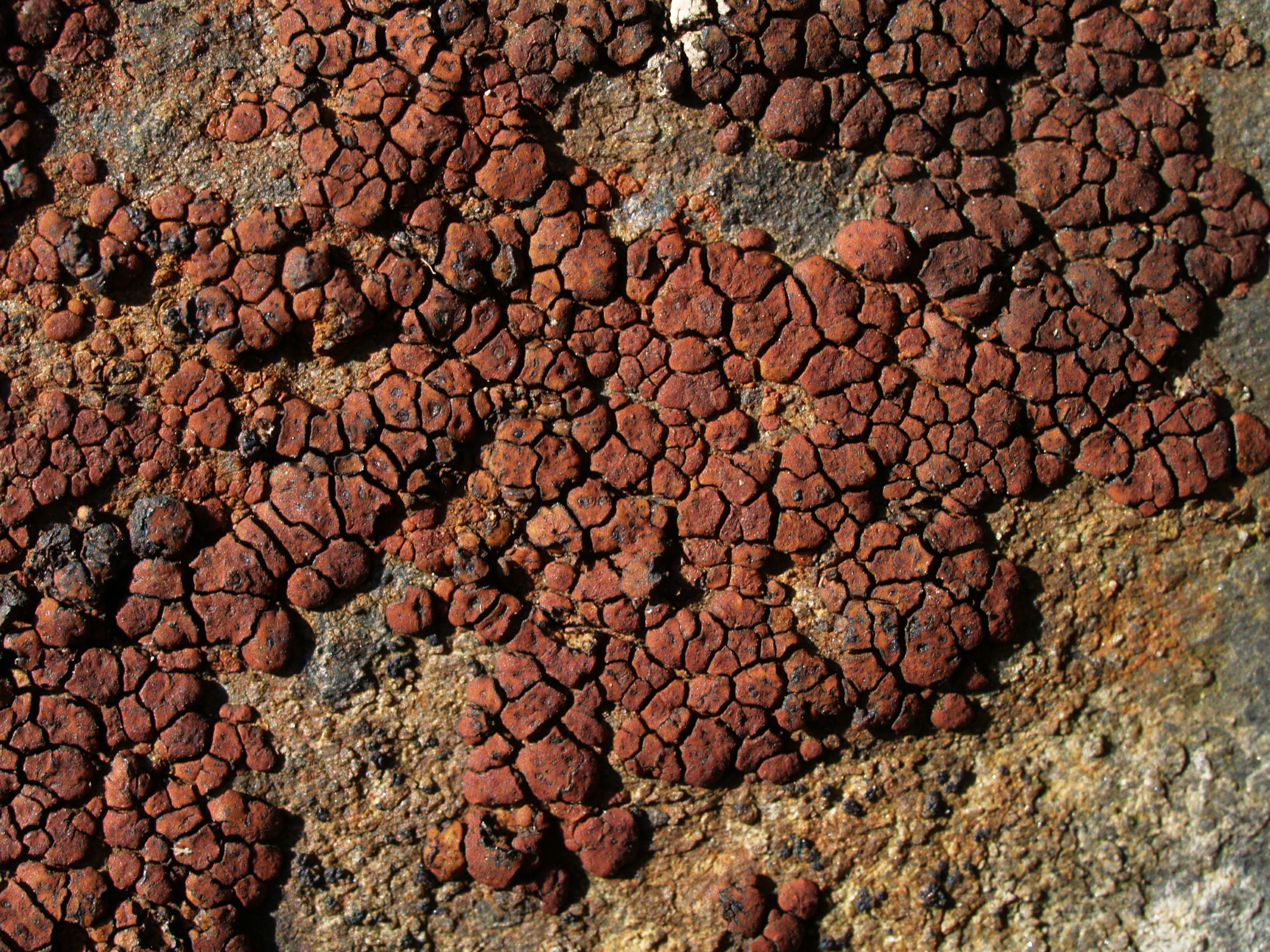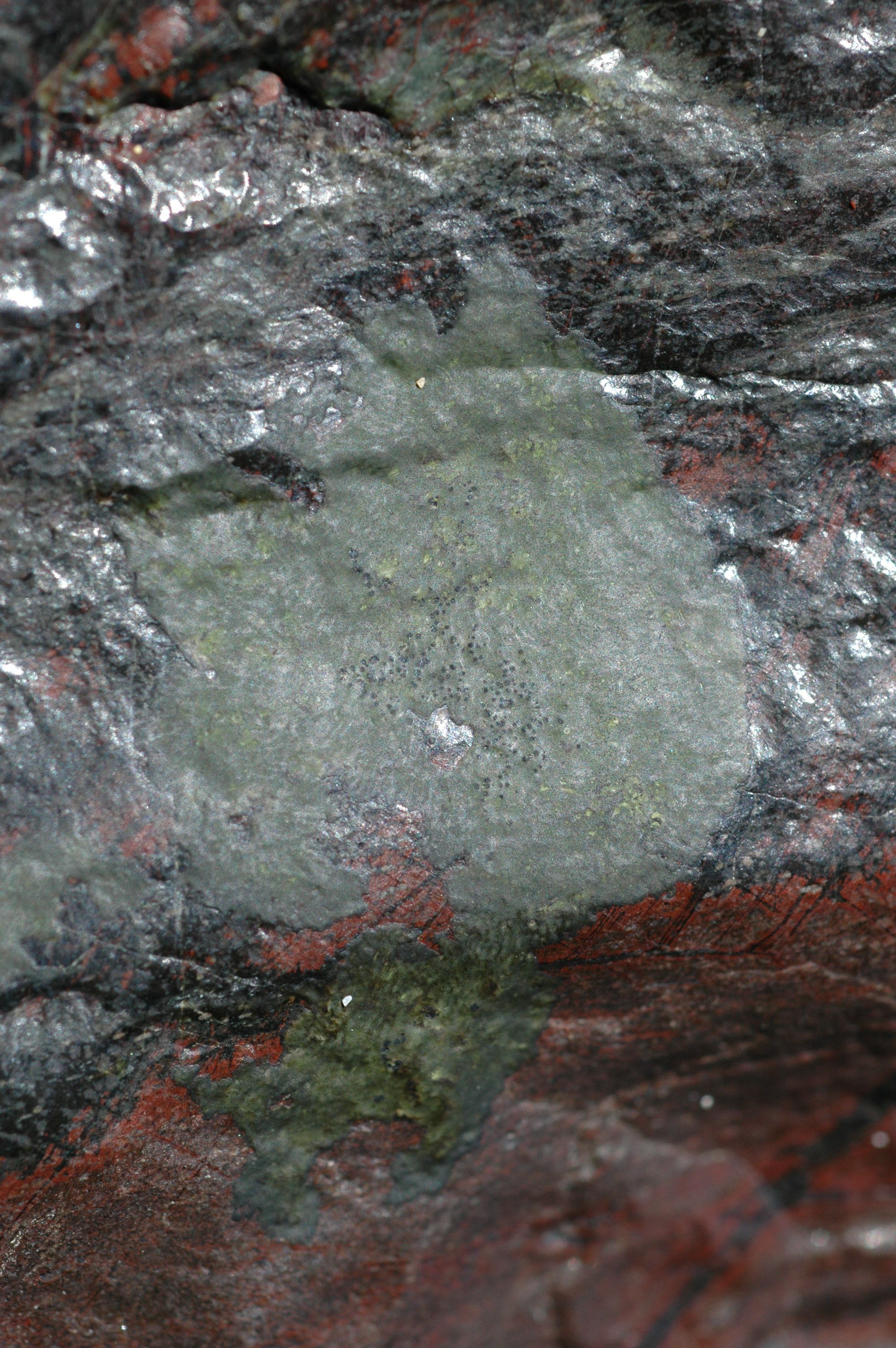 Acarospora sinopica. B J Coppins. On vertical rock face in copper mine. Tomnadashan Mine SSSI, Scotland. small