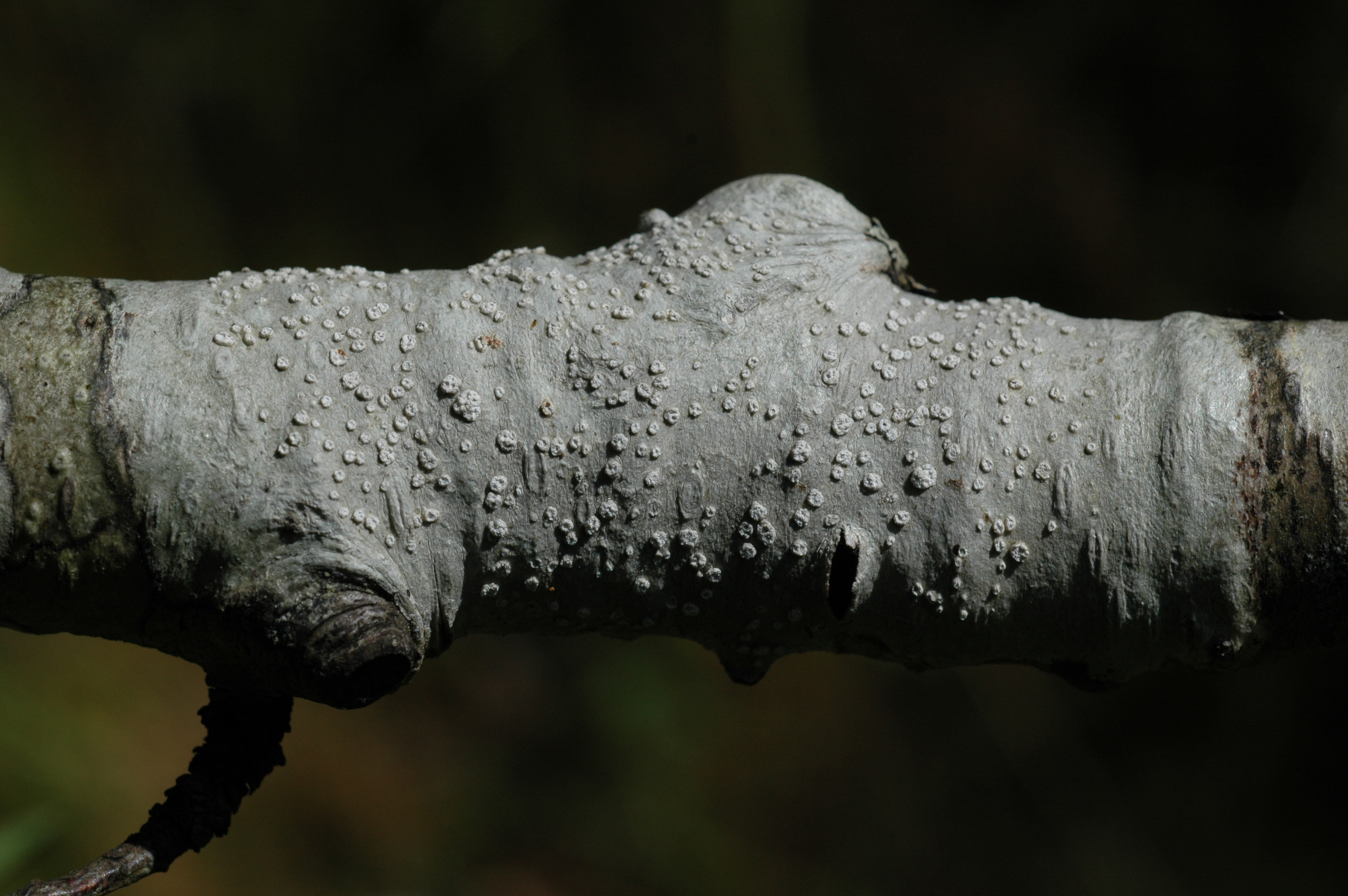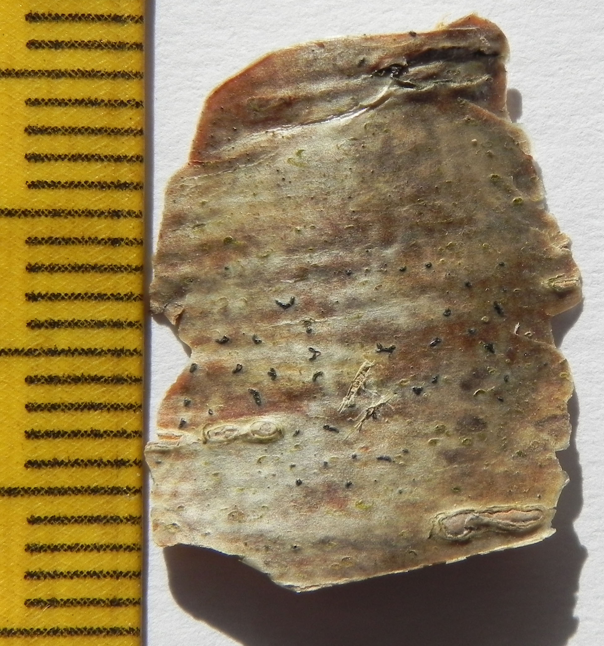 Arthopyrenia salicis. Mark Powell. From old wattle rod, c1700. Riseley, Bedfordshire. small