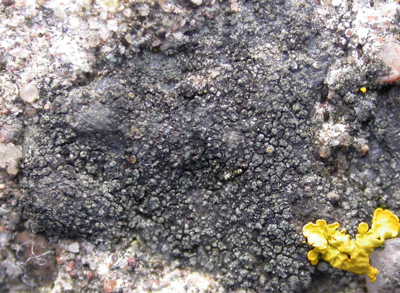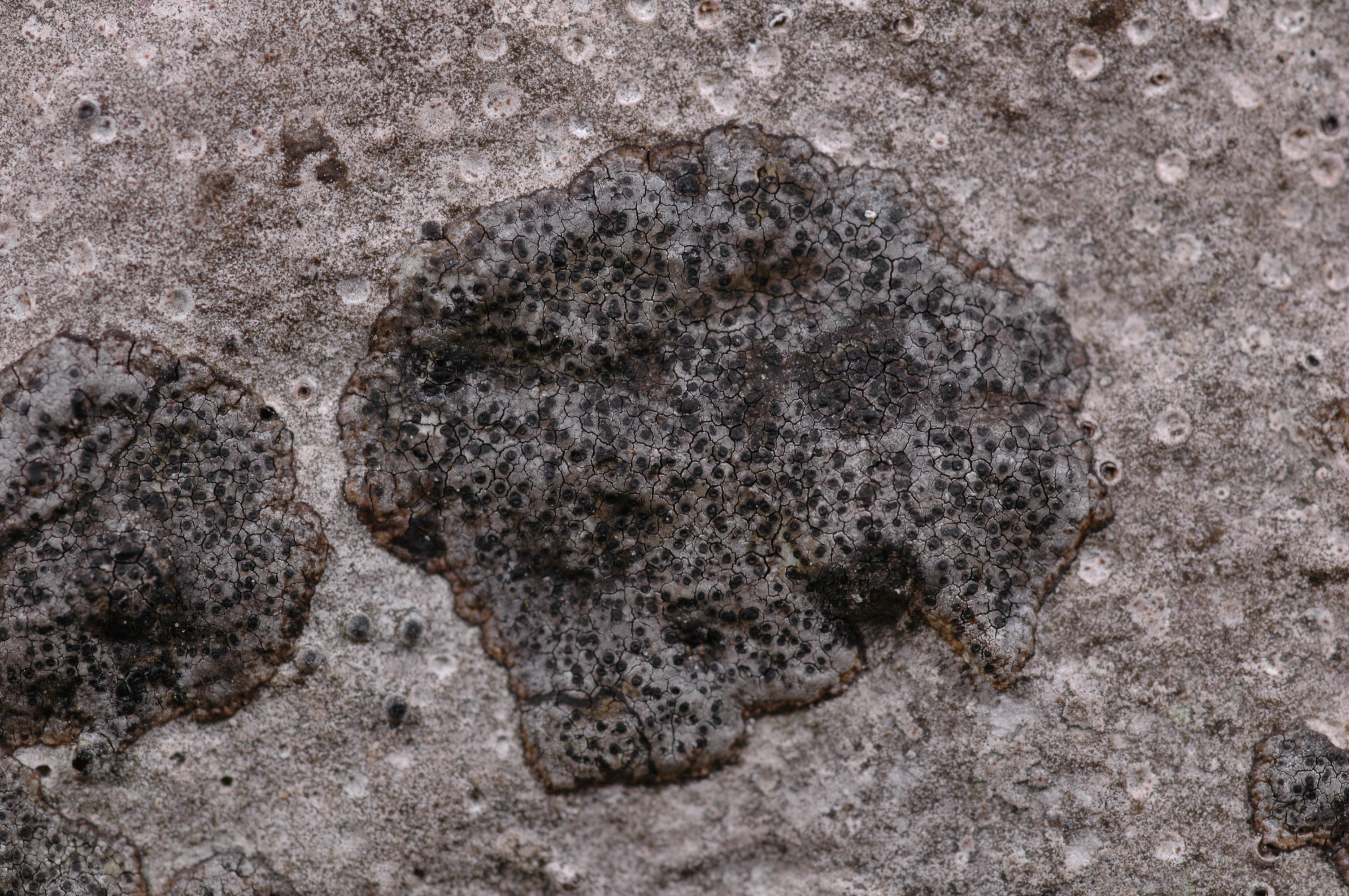 Verrucaria nigrescens. M Sutcliffe. On siliceous tombstone. Darlington, England. small
