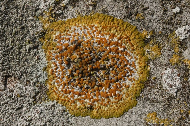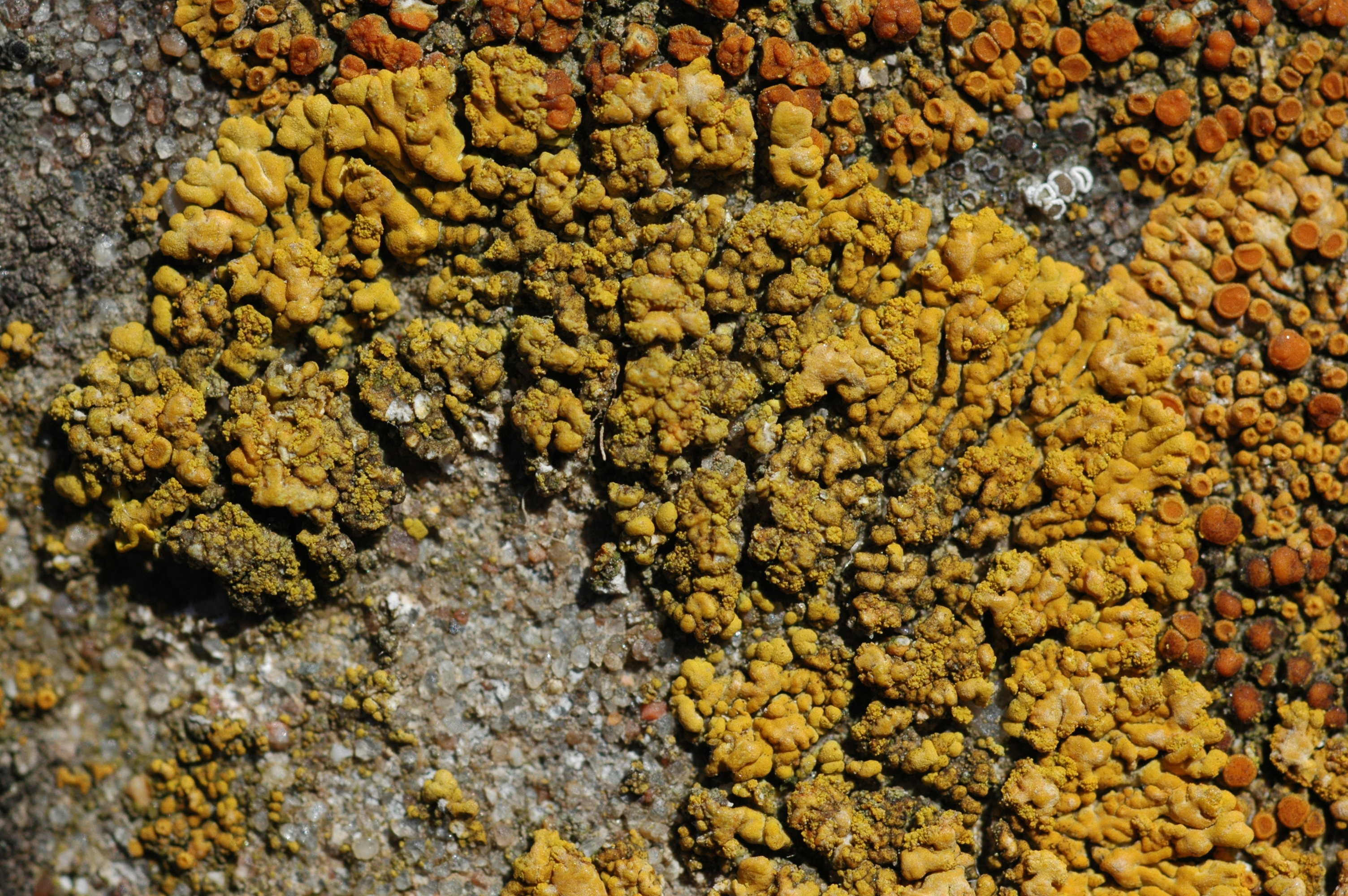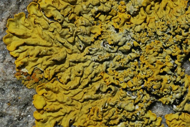 Xanthoria calcicola. Jeff Blincow. On gravestone, Brafield, Northampton, England. small