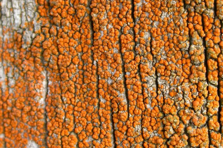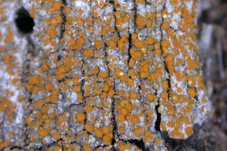 Xanthoria parietina. M Sutcliffe. Shade form on sycamore. Teesdale, England. small