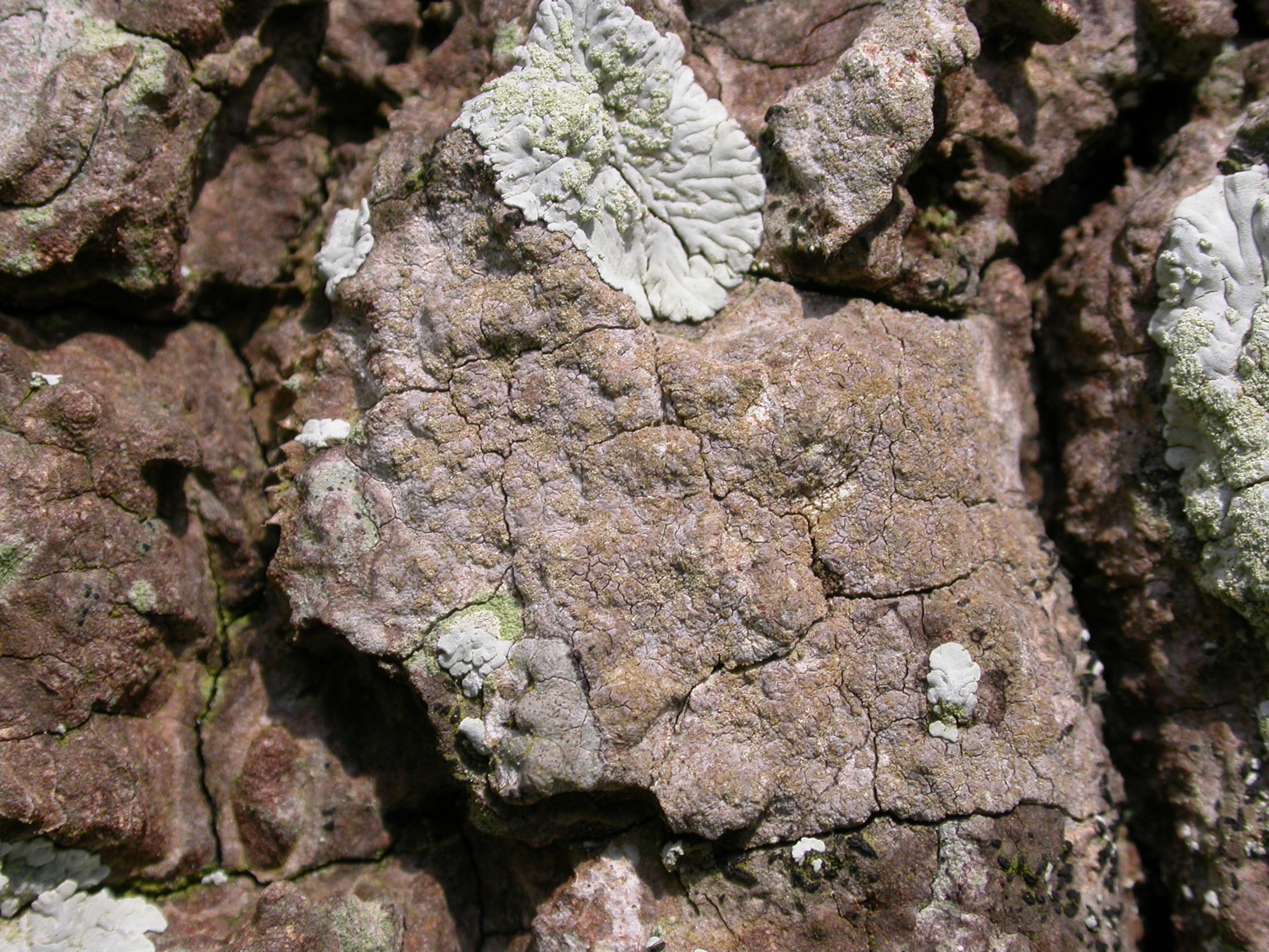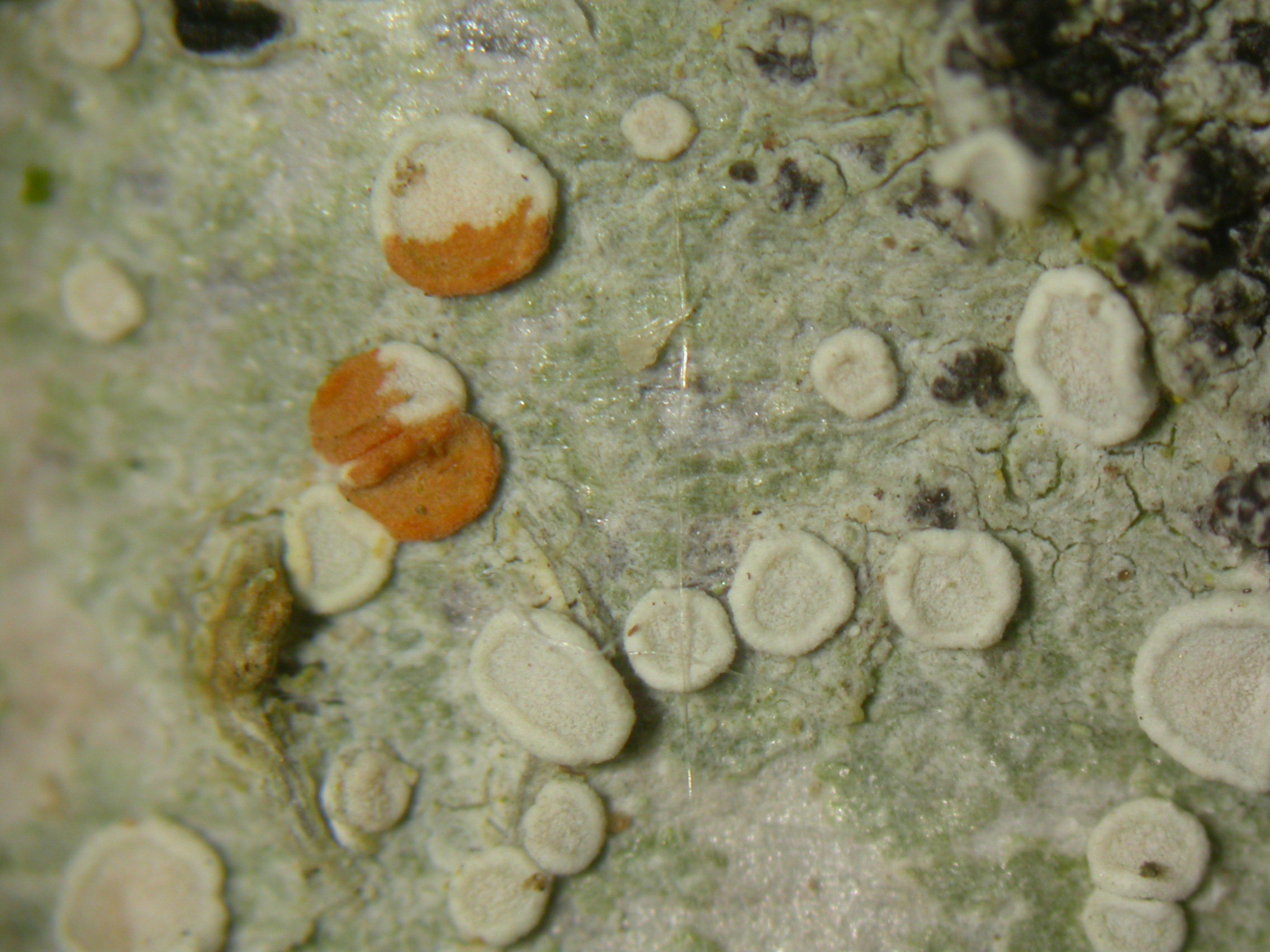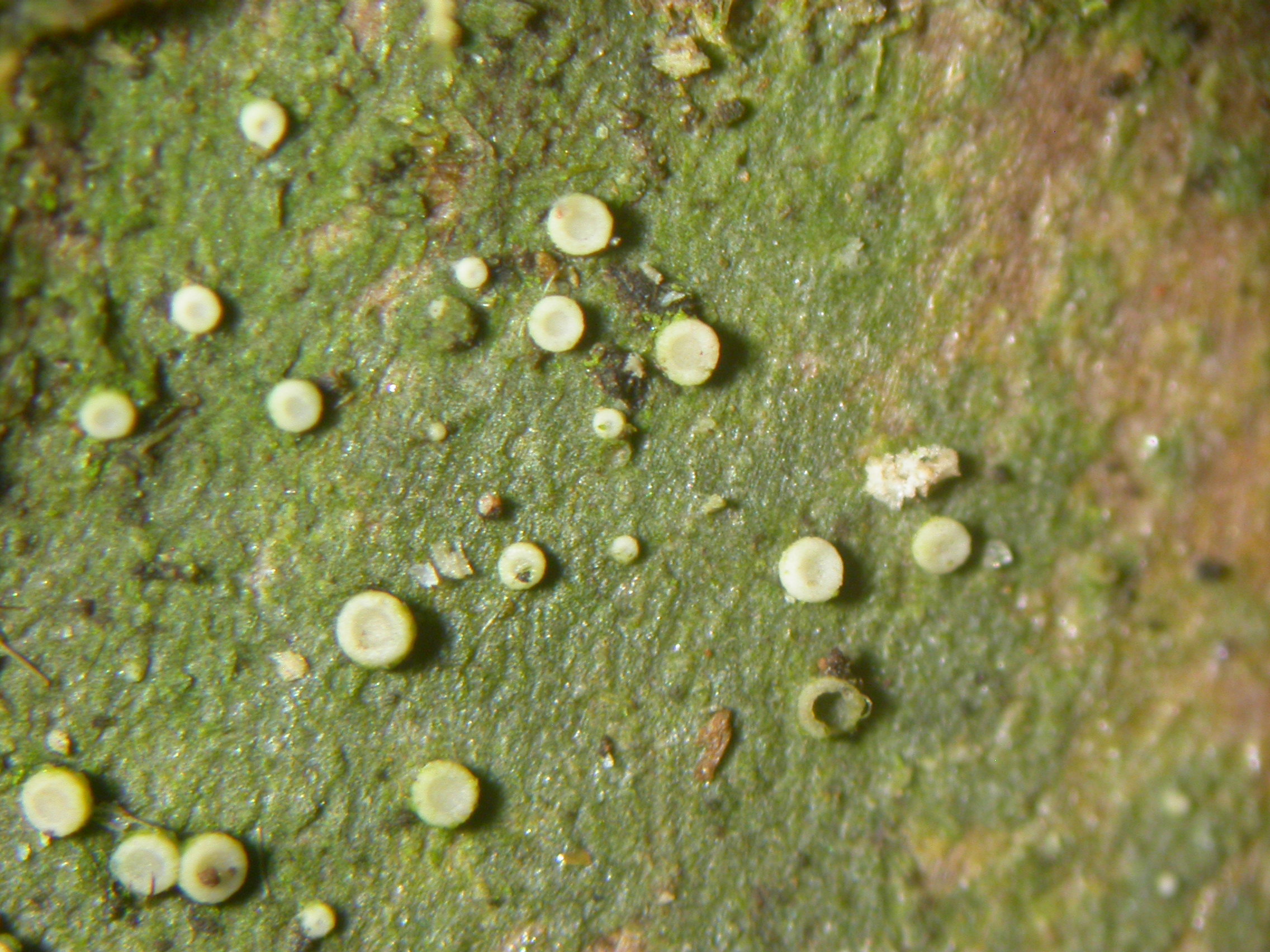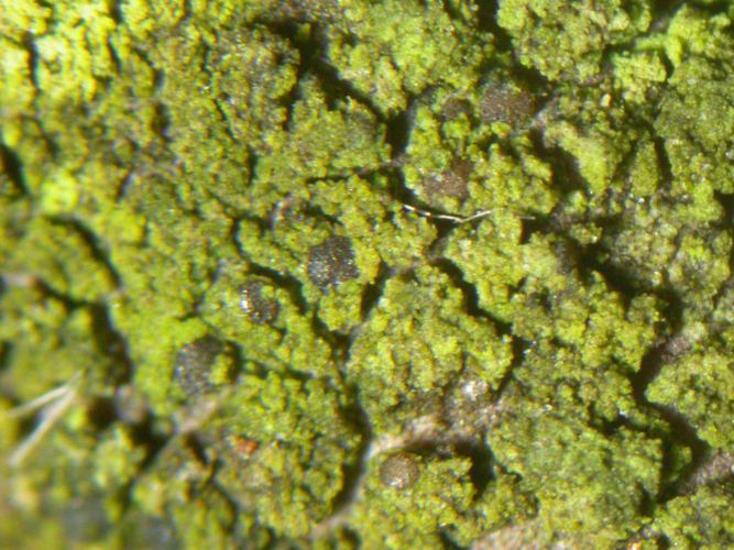 Amandinea punctata. M Sutcliffe. On trunk of plane tree. Gateshead, England. small