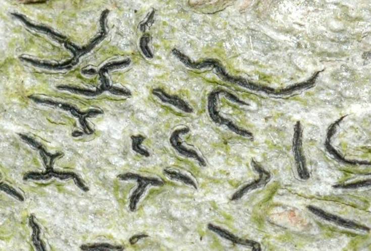 Acrocordia conoidea. M Sutcliffe. On limestone. Wolfscote Dale, Hartington, Derbyshire. small