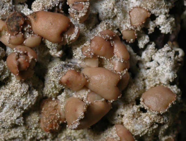 Kalchbrenneriella cyanescens. M Sutcliffe. Parasitic on Usnea flammea. Rudha na Gailich, Jura, Scotland. small