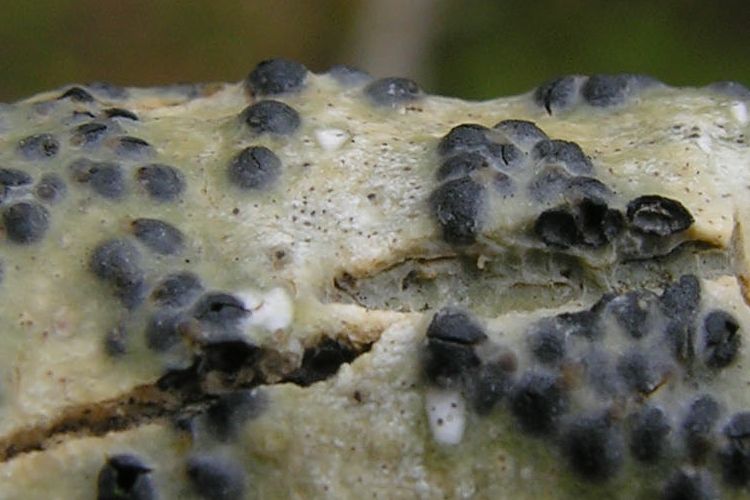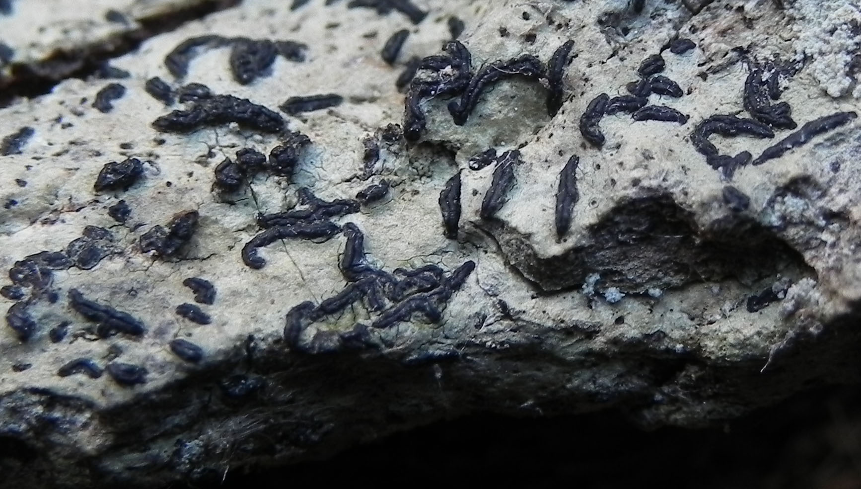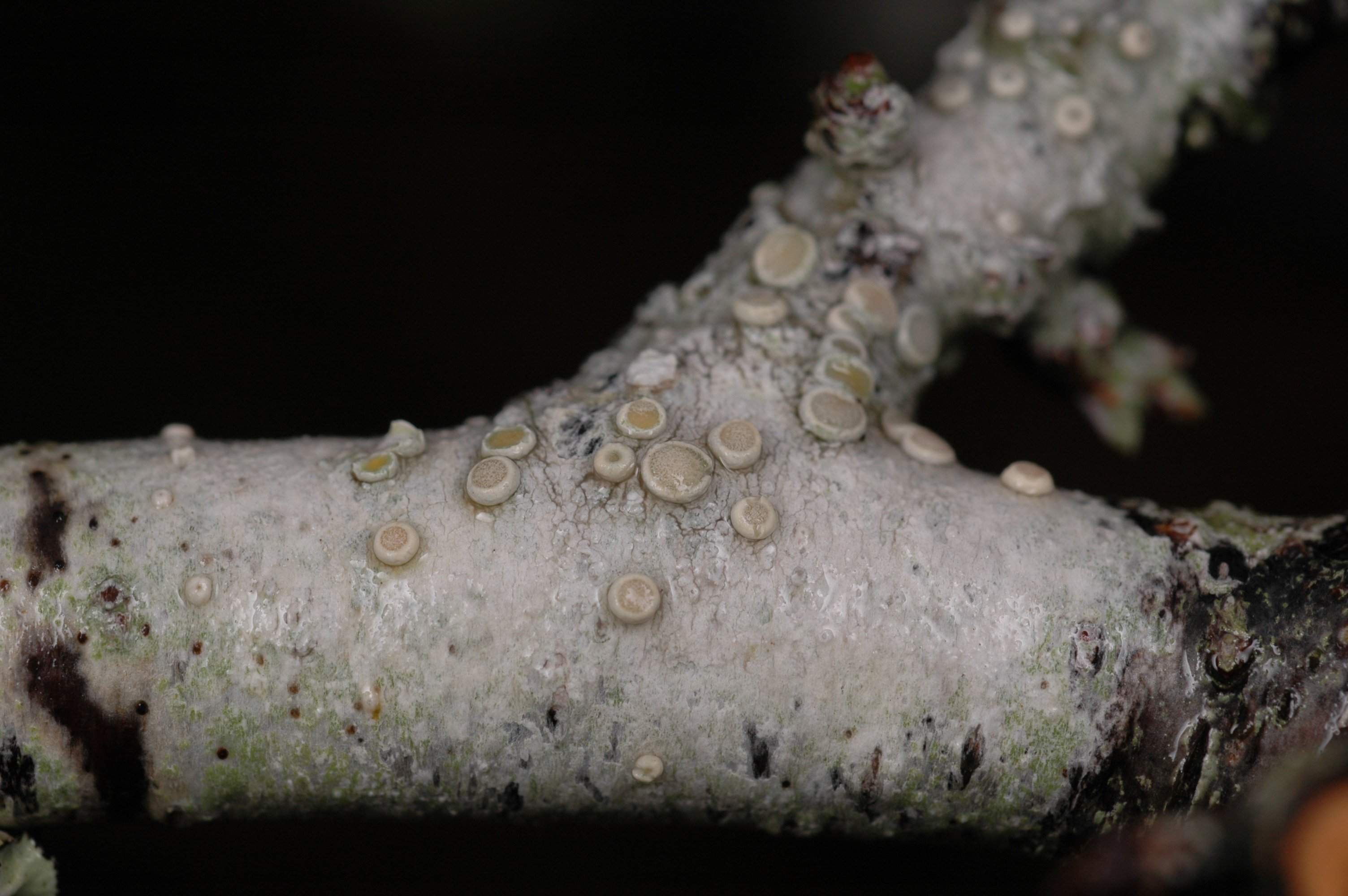 Xerotrema quercicola. N Sanderson. On fallen oak. Powerscourt Deer Park, Wicklow, Ireland. small