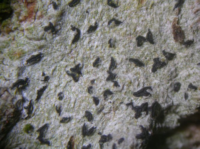 Arthonia stellaris. Neil Sanderson. On rowan in oceanic ravine. Ceunant Llennyrch, Meirionnydd. small