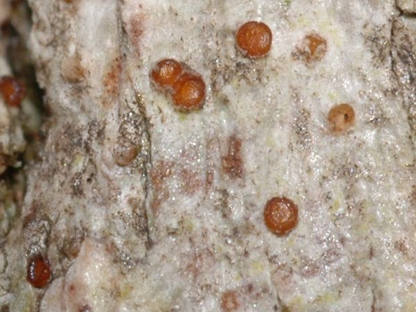 Arthonia cinnabarina. M Sutcliffe. On hazel. Raasay, Scotland. small