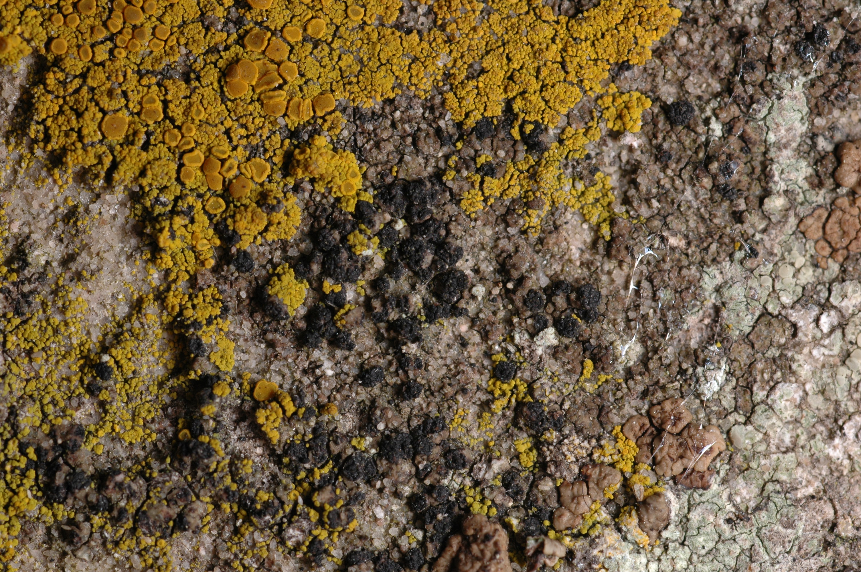 Xanthoria elegans. M Sutcliffe. On siliceous wall. Kindrogan Field Centre, Scotland. small