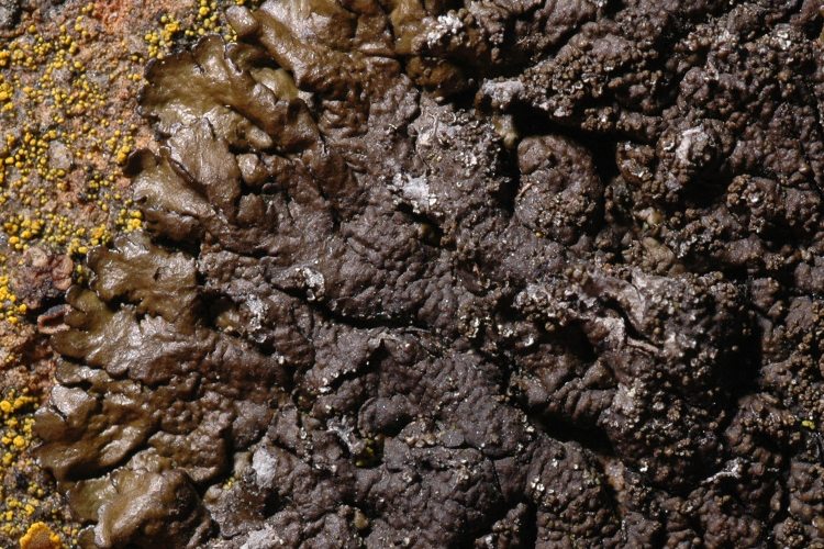 Verrucaria maura. M Sutcliffe. On tidal rocks. Am Scriodan, Isle of Arran, Scotland. small